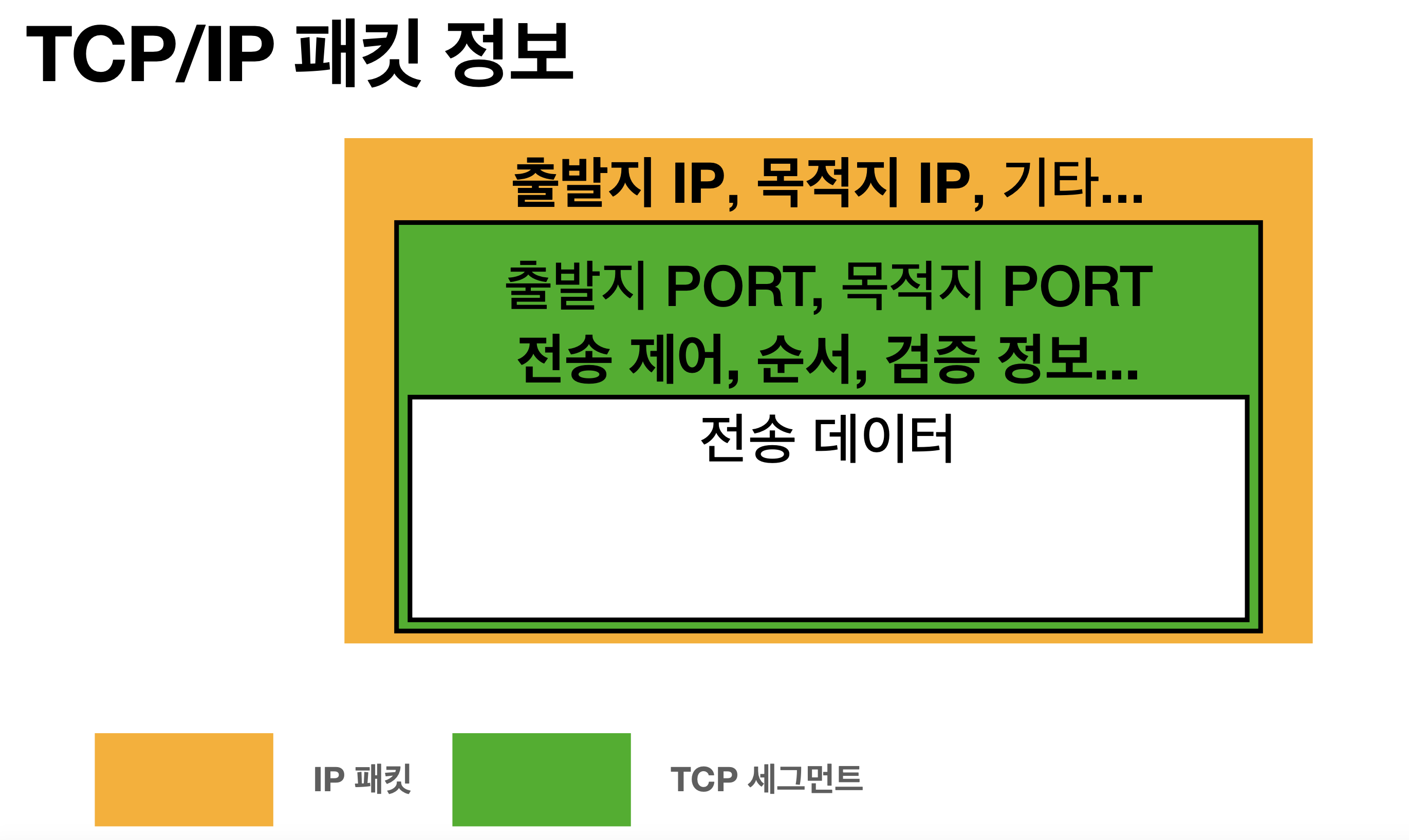소켓의 스트림을 통해 데이터 <-> TCP(세그먼트) <-> IP(패킷) <-> Frame으로 전달이 되는데 여기서 TCP의 주요 특징인 포트가 나온다. 기존에 IP 패킷만 전달할 때는 신뢰성, 순서 보장 등의 문제도 있었지만 한 IP 내에서 여러 애플리케이션이 실행중일 때 어디로 전달이 되어야 하는지를 모르는 문제가 있었다.