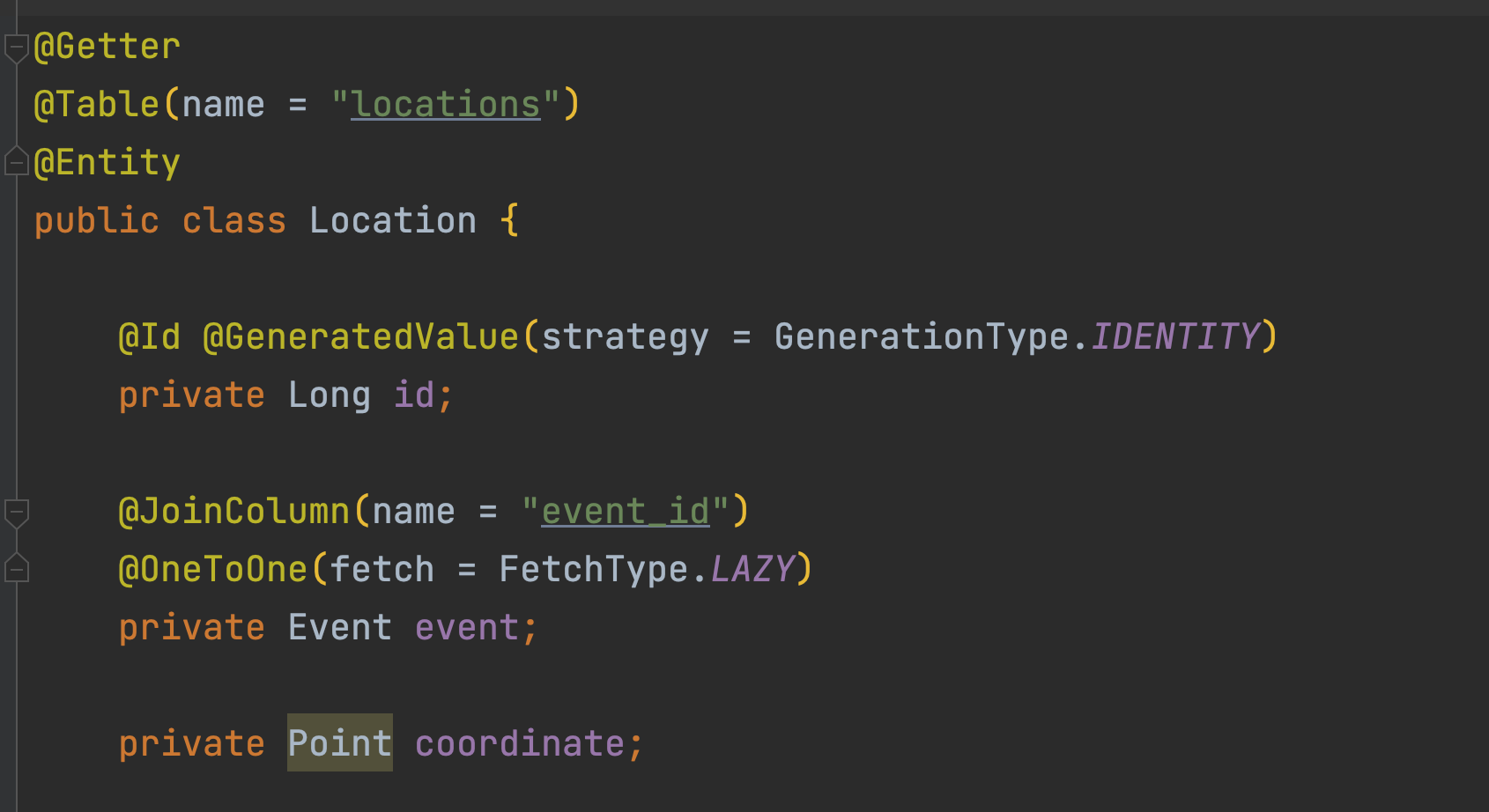 마지막으로 MySQL에서 공간 자료형인 POINT 컬럼을 추가하면 깔끔하게 해결 된다.