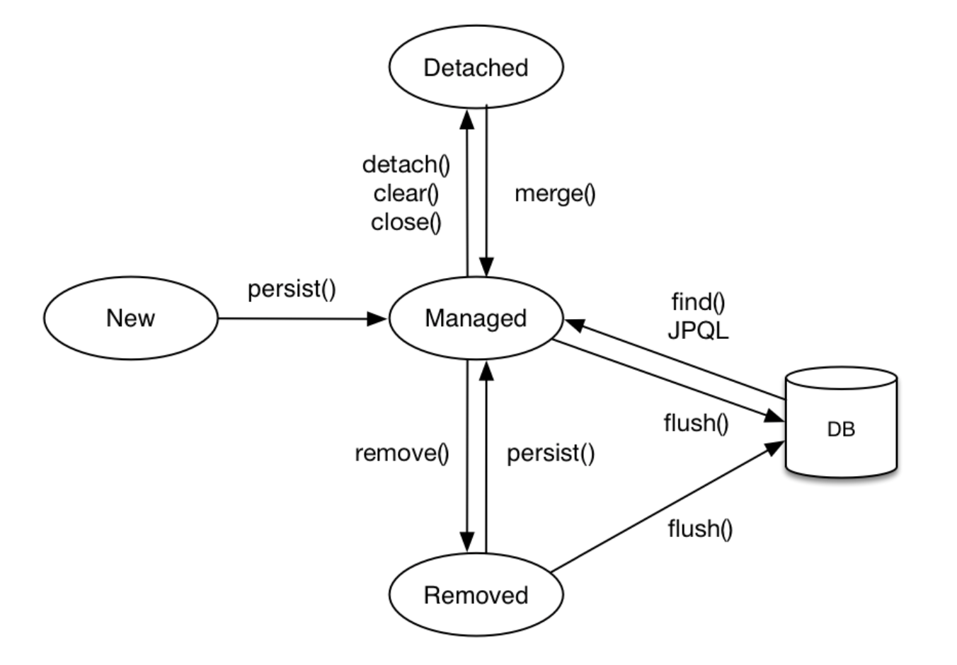 - 삭제 (removed) : 삭제된 상태 (em.remove)